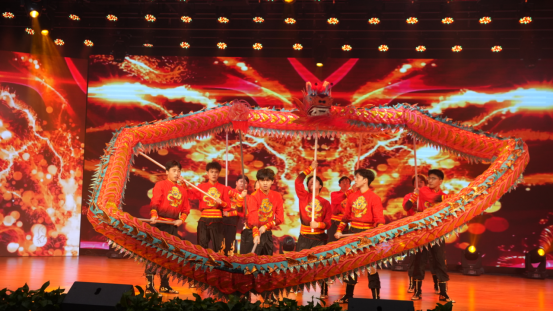 联欢会在开场舞《龙腾欢舞迎新年》中正式拉开帷幕,轻快激昂的音乐、色彩鲜艳的服饰、热情洋溢的精彩表演,瞬间点燃了现场气氛。随后,歌舞、情景剧、音诗画舞等节目轮番上演。