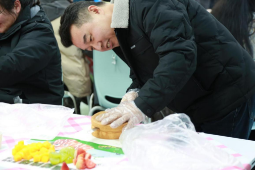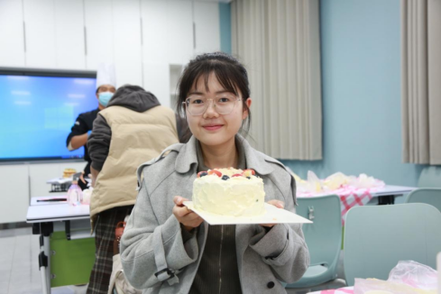 讲座结束后,进入轻松愉快的DIY蛋糕制作环节。在专业烘焙师的耐心指导下,平日里忙于教学、科研的老师们纷纷化身“甜点大师”,兴致勃勃地投入到蛋糕创作中。从蛋糕胚的涂抹、奶油的裱花,到水果的装饰点缀,每一个步骤都做得一丝不苟,现场气氛温馨而热烈。一番精心“创作”后,一个个独具匠心、精美别致的蛋糕陆续诞生。大家欣赏着自己的劳动成果,脸上洋溢着满足与自豪的笑容,纷纷举起手机记录下这甜蜜的瞬间。