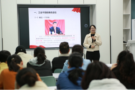讲座环节,邹主任从三个方面阐述了新时期工会干部的职责与使命。一是精准把握工会干部的定位,强调工会干部要立足桥梁纽带角色,当好教职工利益的代表者和维护者。二是深刻理解工会工作的内涵,深入剖析维护职工合法权益、竭诚服务职工群众这一工会工作的基本职责,引导大家思考如何将服务落到实处、细处。三是切实加强工会的组织建设,探讨如何健全工作机制、激发组织活力,从而更有效地凝聚人心、汇聚力量。整场讲座观点鲜明、案例生动,为在场的工会干部如何更好地履行“娘家人”职责提供了清晰的思路和具体的方法指导。