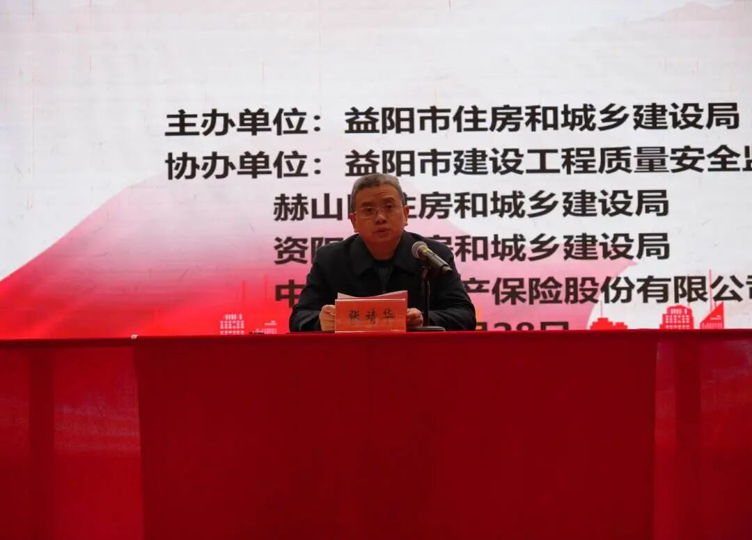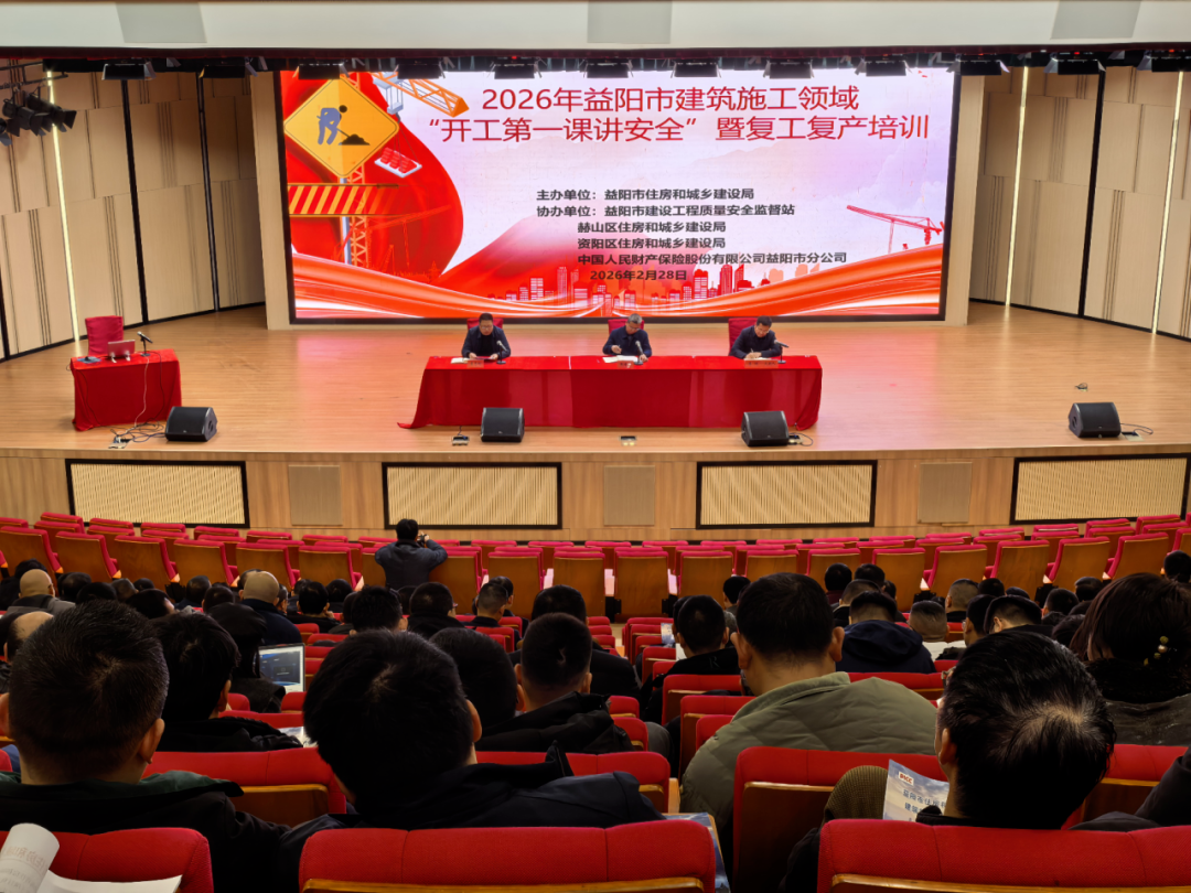 为切实抓好春节后建筑施工复工复产安全生产工作,拧紧全员安全“思想阀”,确保全市住建领域实现“开门安”“开门稳”,2月28日,益阳市2026年春节后建筑施工领域“开工第一课讲安全”暨复工复产培训会议在市一园两中心报告厅召开。市住建局党组书记、局长张靖华出席会议并讲话,党组成员、副局长李顺主持会议。全市住建系统监管人员、各在建项目及相关企业负责人参会。
