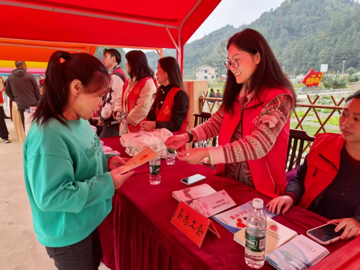 在各村活动现场,安化县总工会聚焦群众实际需求,精心搭建服务平台,通过设置咨询台、发放宣传资料、现场宣讲等方式,向群众普及工会基本职能、职工权益保障等方面的知识,耐心细致解答群众关心的劳动纠纷化解、农民工就业帮扶等热点问题,用通俗易懂的语言将政策讲清楚、把权益说明白,切实增强群众依法维权的意识与能力。并为村上监测户、脱贫户、低保户、残疾人等困难村民捐赠食用油等生活必需品,“感谢工会想着我们,这油拿到手里,心里更是暖烘烘的!” 一位领取物资的困难村民说道。